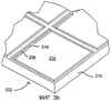 Согласно фиг.3а, поверхность массива 103 микрозеркал имеет большое отношение заполнения. Это значит, что большая часть поверхности массива 103 микрозеркал образована отражающими поверхностями зеркальных пластин 204 микрозеркал 202. Очень малая доля поверхности массива 103 микрозеркал является неотражающей. Согласно фиг.3а, неотражающие участки поверхности массива 103 микрозеркал представляют собой области между отражающими поверхностями микрозеркал 202. Например, ширина области между зеркалами 202-1 и 202-2 определяется шириной 212 разделительной стенки и суммой ширины зазора между зеркальными пластинами 204 зеркал 202-1 и 202-2 и опорной стенкой. Зазоры и ширину 212 разделительной стенки можно сделать такими же малыми, как и размер элементов, обеспечиваемый методом изготовления. Таким образом, согласно одному варианту осуществления, зазоры составляют 0,2 микрона, а согласно другому варианту осуществления, зазоры составляют 0,13 микрона. Поскольку полупроводниковые технологии обеспечивают малые элементы, размер разделительной стенки 210 и зазоры можно уменьшить для обеспечения более высокого отношения заполнения. На фиг.3b показан вид в перспективе, детализирующий одно зеркало 202 массива 103 микрозеркал, показанного на фиг.3а. Варианты осуществления настоящего изобретения допускают отношения заполнения 85%, 90% и даже выше.