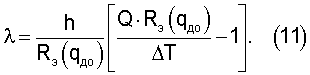 Теплопроводность исследуемого образца с термическим сопротивлением R и толщиной h определяется как =h/R. Уравнение измерения получим, используя выражения (1) и (2):