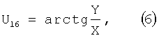 Блок 14 вычисления арктангенса формирует на своем выходе сигнал