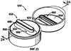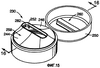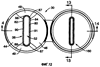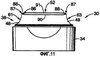 Согласно фиг.3, 11, 12, 14 и 14А в соответствии с основным признаком изобретения вариант укупорочной системы 30 включает продолговатое или удлиненное выдачное отверстие 52, образованное в выливном носике 38 для выдачи продукта в виде ленточного экструдата. Выдачное отверстие 52 образовано периферической поверхностью 86 выдачного отверстия. Как показано на фиг.1 и 2, периферическая поверхность 86 выдачного отверстия включает переднюю часть 90 и заднюю часть 92, которая по существу параллельна передней части 90. Периферическая поверхность 86 выдачного отверстия также включает пару скругленных боковых участков 88 (фиг.1). Эта уникальная форма выдачного отверстия 52 позволяет пользователю выдавать ленту продукта управляемым образом и уменьшать или исключать усилие, требуемое для намазывания продукта после его выдачи из контейнера.