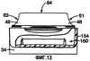 Крышка 150 включает элемент, уплотняющий отверстие, или «выступ» 160, который проходит от краевой стенки 158 крышки и приспособлен для уплотняющего зацепления с периферической поверхностью 86 выдачного отверстия, когда крышку 150 поворачивают из открытого положения (показанного на фиг.1) к закрытому положению (показанному на фиг.10). Элемент 160, уплотняющий отверстие, включает задний участок 162 и передний участок 164. Выражения «передний» и «задний», используемые здесь, указывают положение элемента 160, уплотняющего отверстие, когда крышка 150 находится в закрытом положении. Как будет понятно, элемент 160, уплотняющий отверстие, имеет комплементарную форму относительно формы выдачного отверстия 52.