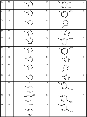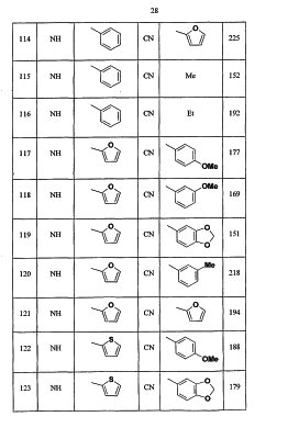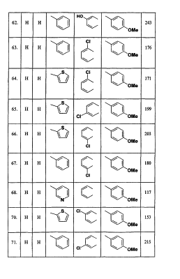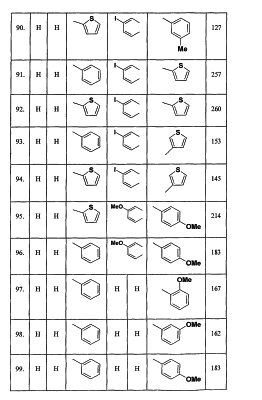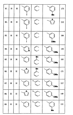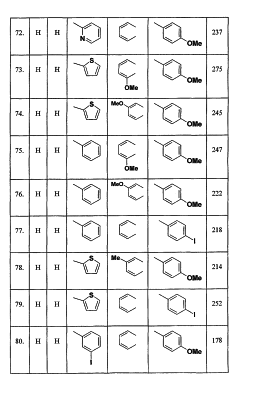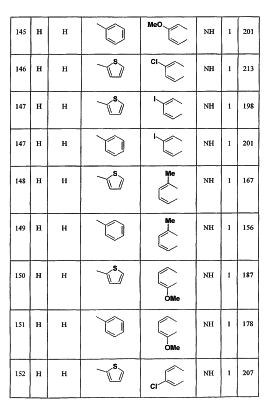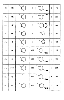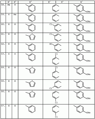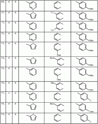 Принимая во внимание описанное выше действие, антагонисты рецептора аденозина А3 в соответствии с данным изобретением могут терапевтически применяться в качестве противовоспалительных агентов, антиастматических агентов, противоишемических агентов, антидепрессантов, антиаритмических агентов, защитных почечных агентов, противоопухолевых агентов, антипаркинсонических агентов и агентов, улучшающих познавательную способность. Они также могут применяться при лечении или профилактике миокардиального реперфузионного повреждения, хронического обструктивного заболевания легких (ХОЗЛ) и респираторного дистресс-синдрома у взрослых (РДСВ), включая хронический бронхит, легочную эмфизему или одышку, аллергических реакций (например, ринита, реакции на ядовитый плющ, крапивницы, склеродермы, артрита), других аутоиммунных заболеваний, воспаления кишечника, болезни Аддисона, болезни Крона, псориаза, ревматизма, гипертензии, расстройств неврологической функции, глаукомы и диабета (K.N. Klotz, Naunyn-Schmiedberg’s Arch. Pharmacol. 362:382, 2000; P.G. Baraldi and P.A. Borea, TiPS 21:456, 2000).