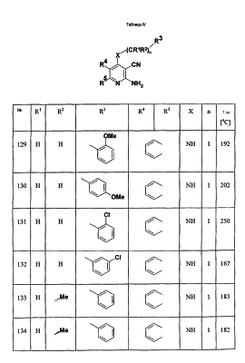 Некоторые соединения общей формулы (I), (II), (III) и (IV) демонстрируют замечательное биологическое действие. Соединения общей формулы (IA), определенной в пункте 2 в качестве подгруппы соединений общей формулы (I), определенной в пункте 1, оказывают наиболее важное действие. За исключением 5 соединений их значения Ki не выше 20 нМ. Соединения, данные в качестве примеров, являются особенно предпочтительными. Их значения Ki, полученные в исследовании связывания человеческого рецептора аденозина А3, составляет от 0,19 до 0,69 нМ. Значения Ki наиболее предпочтительных соединений составляют от 0,14 до 0,15 нМ.