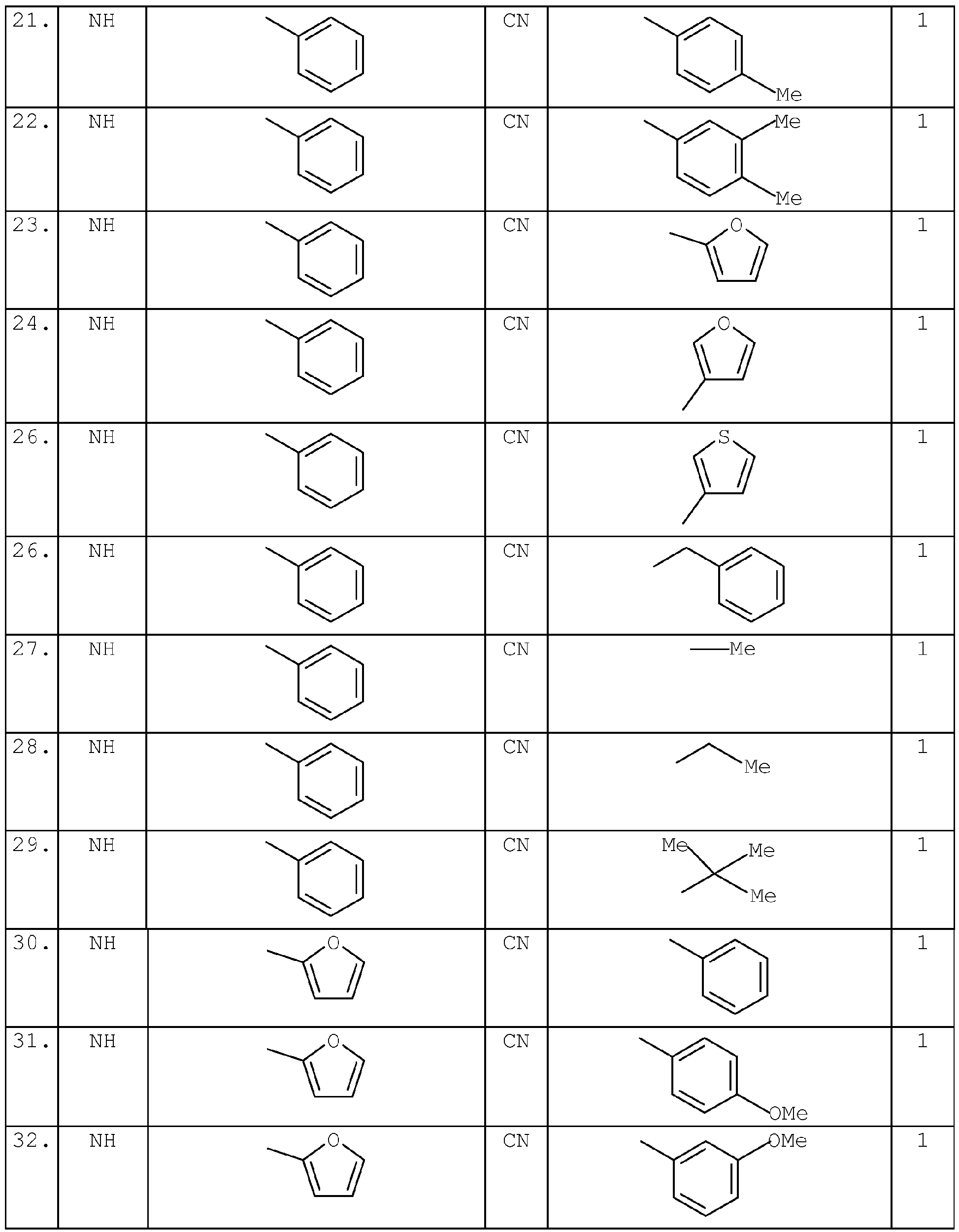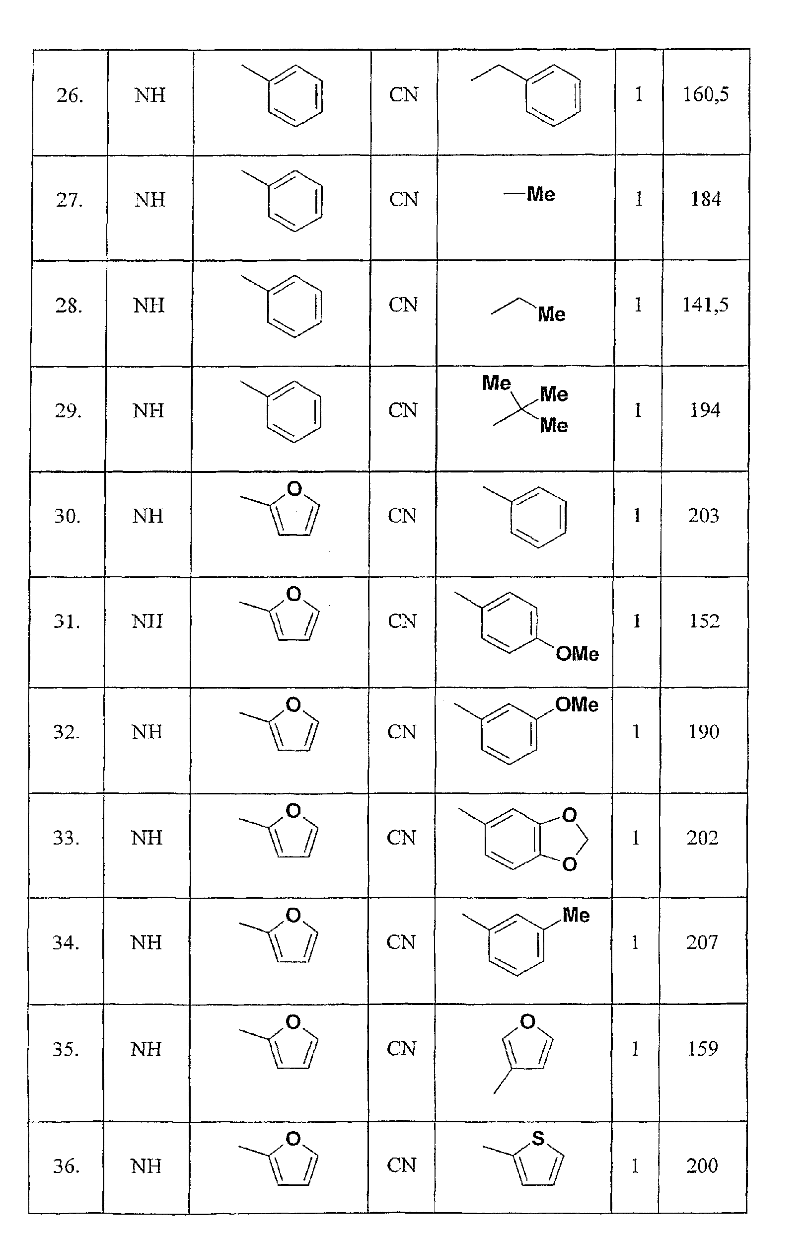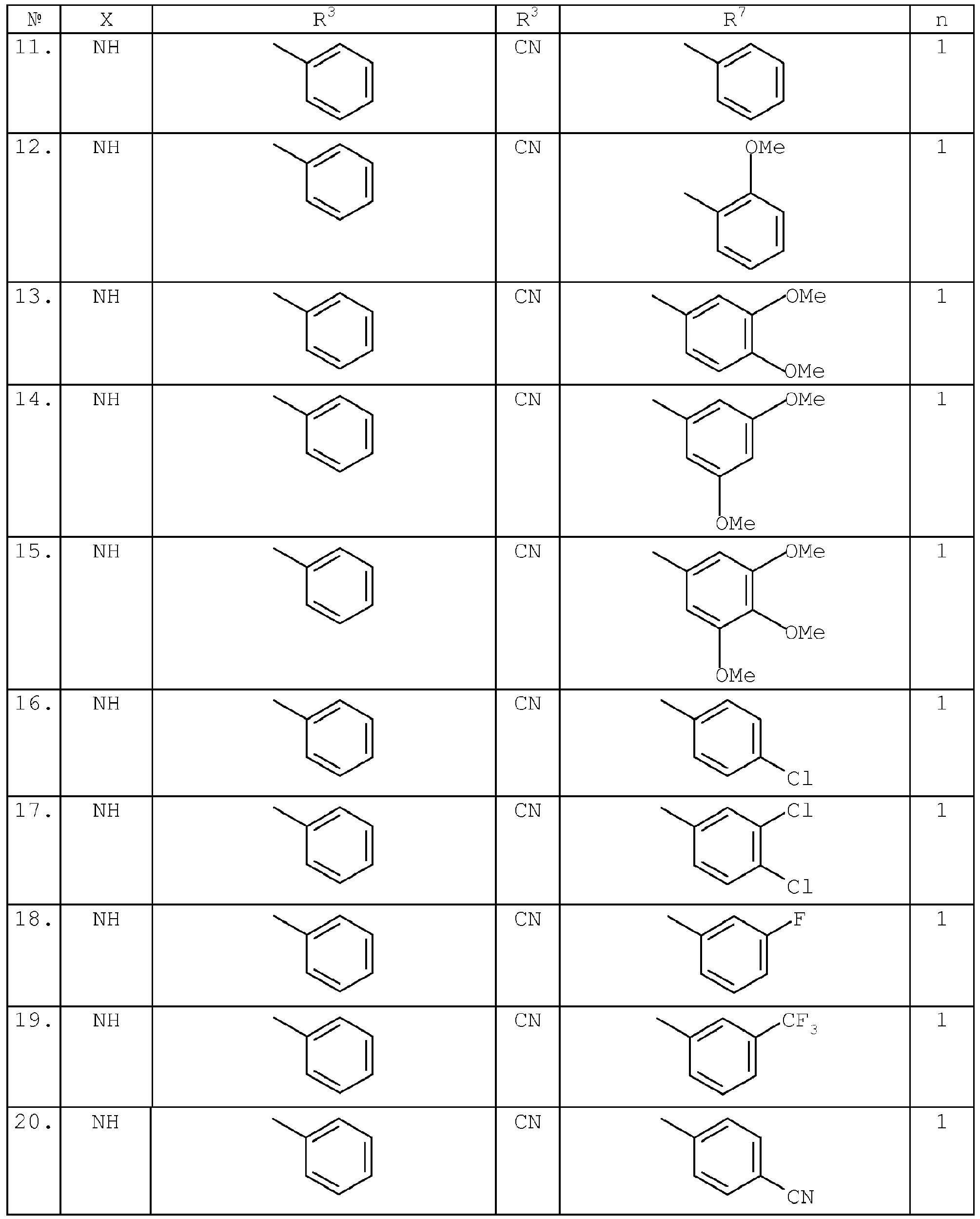где R1, R2, R3, R4, R5, R6, R8, X и n имеют значения, определенные в п.1, при условии, что R3 не может быть фенильной группой, если R1 и R2 являются атомом водорода, n=1, X является -NH- группой, R4 и R5 вместе образуют 1,3-бутадиенильную группу и R6 является цианогруппой, при еще одном условии, что R3 не может быть прямой или разветвленной С1-4 алкильной группой или фенильной группой, замещенной прямой или разветвленной С1-4 алкоксигруппой, если n=0, X является -NH- или -NR8– группой, R8 имеет значения, указанные в п.1, R4 и R5 вместе образуют 1,3-бутадиенильную группу и R6 является цианогруппой.
