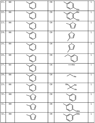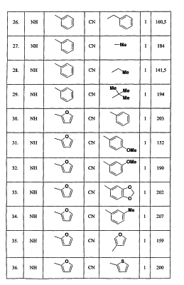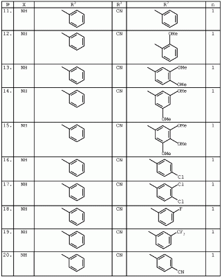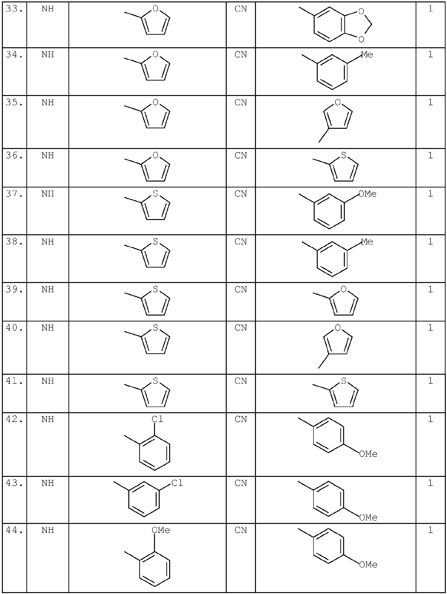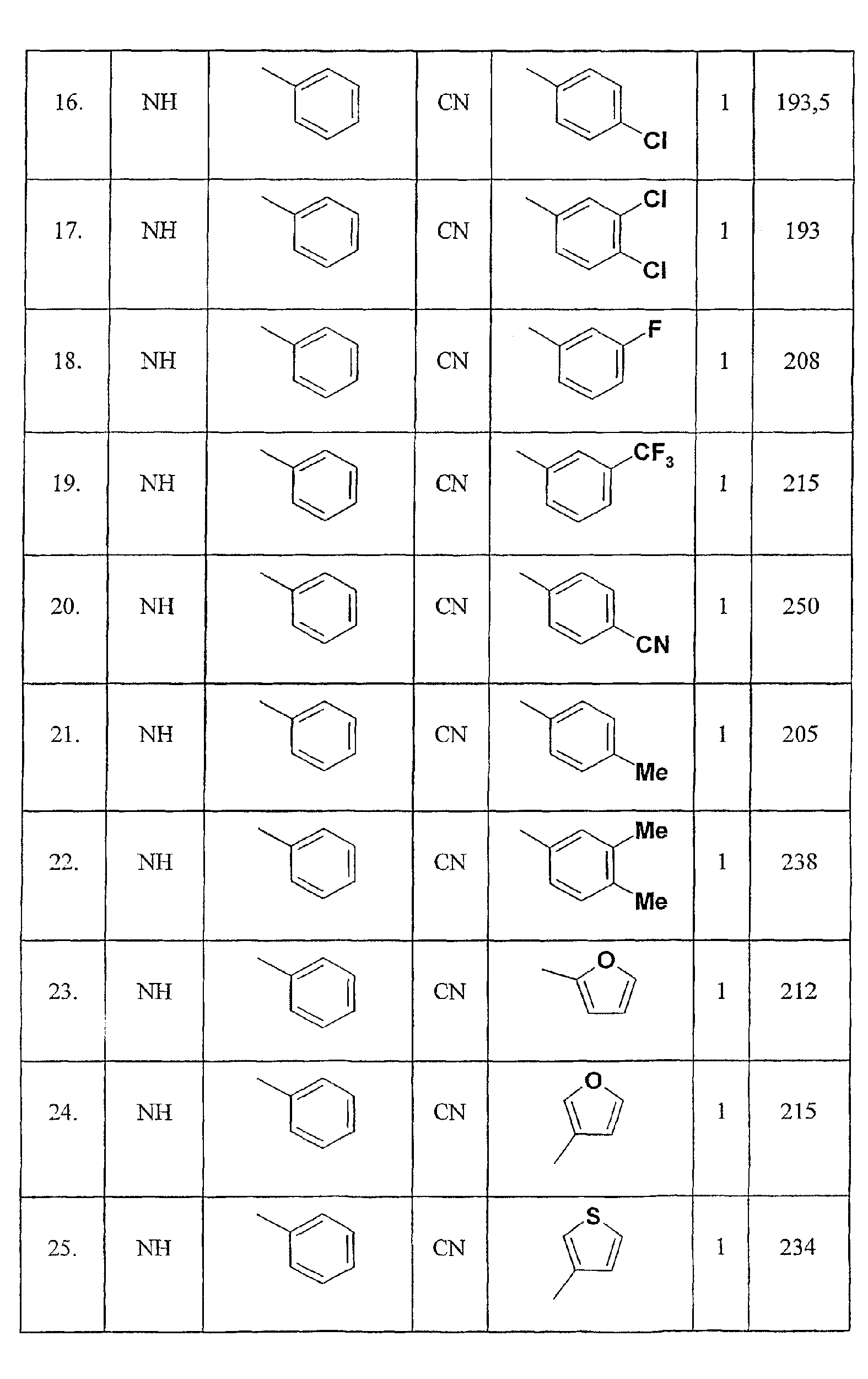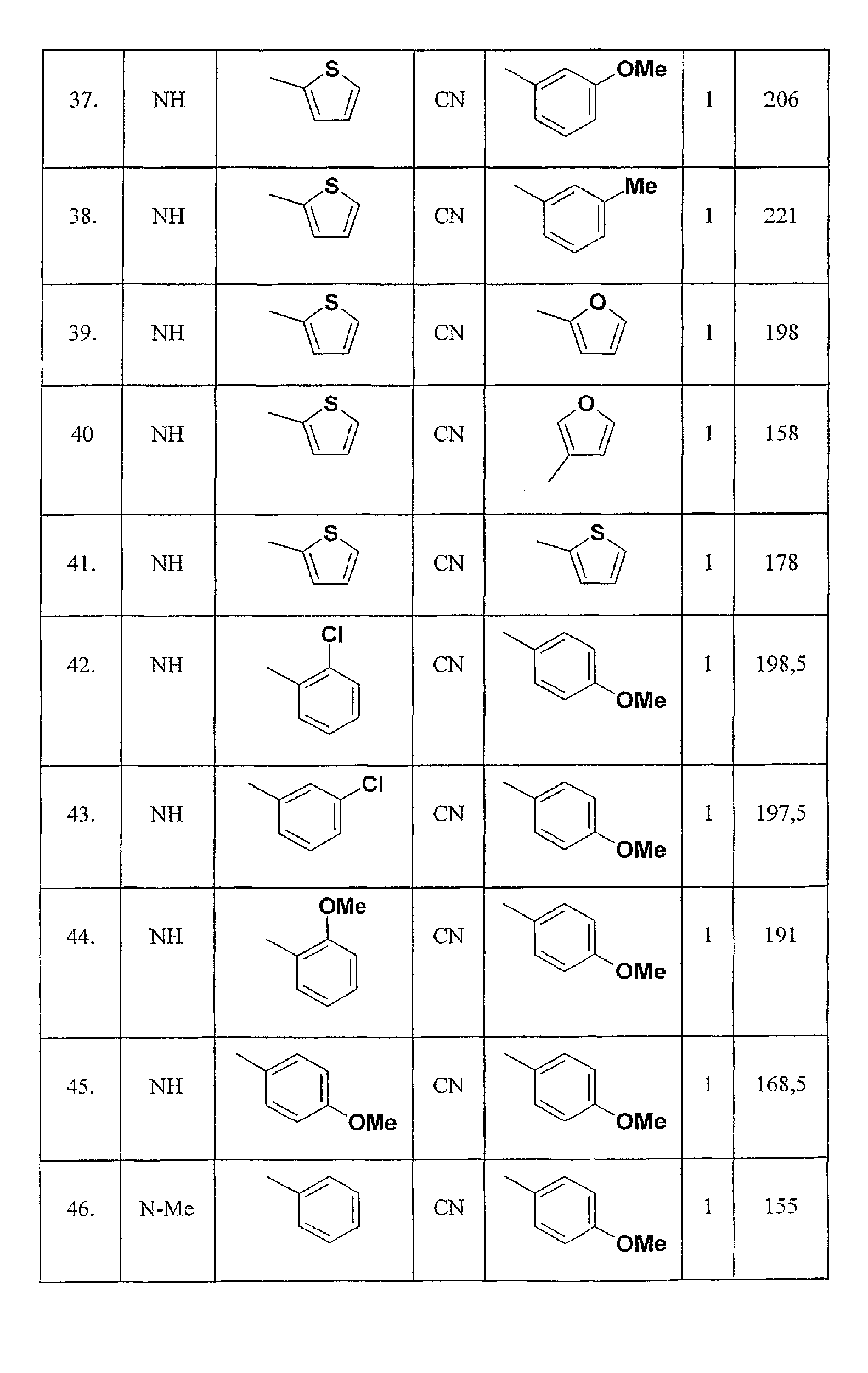 где R1, R2, R3, R4, R5, R6, R8, X и n имеют значения, определенные в п.1, при условии, что R3 не может быть фенильной группой, если R1 и R2 являются атомом водорода, n=1, X является -NH- группой, R4 и R5 вместе образуют 1,3-бутадиенильную группу и R6 является цианогруппой, при еще одном условии, что R3 не может быть прямой или разветвленной С1-4 алкильной группой или фенильной группой, замещенной прямой или разветвленной С1-4 алкоксигруппой, если n=0, X является -NH- или -NR8– группой, R8 имеет значения, указанные в п.1, R4 и R5 вместе образуют 1,3-бутадиенильную группу и R6 является цианогруппой.