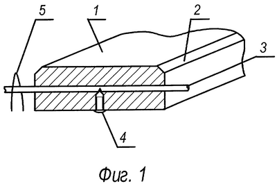Перпендикулярно продольной оси элемента 1 с двух его сторон проделаны сквозные отверстия для пропускания через каждое из них своей гибкой связи 3, которая может быть выполнена в виде веревки, бечевы, шнура, троса и т.п., преимущественно свитых из полимерного материала, например капрона. Гибкая связь 3 зафиксирована в отверстии с помощью, по меньшей мере, одного крепежного средства в виде винта 4. Также указанная фиксация может осуществляться с помощью других крепежных средств, например, клинышков, установленных в отверстии с боковых сторон элемента 1 (не показаны), а также с помощью клея как самостоятельно, так и в сочетании с вышеназванными или другими механическими крепежными средствами.