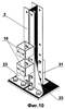 на фиг.10 – стойка в сборе для одностороннего барьерного ограждения мостовой группы с креплением спереди и с задним упором;
