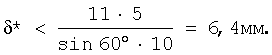 Подставляя значение =11 мм и другие исходные данные в неравенство (2), определим значение *: