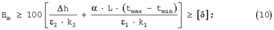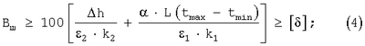 2 – среднее значение показателя относительного удлинения битумно-полимерной мастики, % в диапазоне температур, при которых имеют место неравномерные деформации основания: морозное пучение от 0 до tmin°C, просадка и набухание от 0 до tmax °C;