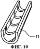 на фиг.9 и 10 – схемы, иллюстрирующие отдельные стадии процесса изготовления охлаждающих каналов предлагаемой в изобретении камеры сгорания, при этом на фиг.9 изображен образующий часть охлаждающего канала обработанный плоский лист, на фиг.10 показан тот же лист в согнутом состоянии.