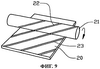 Ниже со ссылкой на фиг.9 и 10 на одном из конкретных примеров более подробно описан предлагаемый в изобретении способ изготовления элемента ракетного двигателя. На фиг.9 показана изготовленная из листового металла заготовка 20 охлаждающего канала. На одной из сторон заготовки 20 путем соответствующей обработки выполнены ребра и/или канавки. На фиг.9 показан прижимаемый к листу 20 вращающийся валок 21 прокатного стана. Показанный на фиг.9 валок имеет на наружной поверхности винтовые ребра 22. Во время прокатки винтовые ребра 22 валка выдавливают в металлическом листе 20 диагональные канавки 23. Согнутый или профилированный лист с выдавленными в нем канавками образует показанную на фиг.10 часть охлаждающего канала. После гибки или профилирования листы с выдавленными в них канавками крепят соответствующим образом к изготовленной из листового металла наружной оболочке 14, вместе с которой они образуют охлаждаемую стенку предлагаемого в изобретении элемента ракетного двигателя.