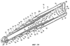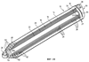 Когда каждая трубчатая ступень 14, 16, 18, 20 и 22 достигает полностью выдвинутого положения, показанного на фиг.2, его соответствующий ударный ограничитель 28 соприкасается с шейкой 52 сальникового муфтового подшипника 50 следующей более широкой трубчатой ступени. Например, когда внутренняя трубчатая ступень 22 достигает своего полностью выдвинутого положения, ударный ограничитель 28, закрепленный на трубчатой ступени 22, упирается в шейку 52 сальникового муфтового подшипника 50, закрепленного на промежуточной трубчатой ступени 20; когда промежуточная трубчатая ступень 20 достигает своего полностью выдвинутого положения, ударный ограничитель 28, закрепленный на трубчатой ступени 20, упирается в шейку 52 сальникового муфтового подшипника 50, закрепленного на промежуточной трубчатой ступени 18; и т.д. Таким образом, в выдвинутом положении перекрытие между соседними трубчатыми ступенями определяется осевыми пределами ударных ограничителей 28 и шеек 52 сальниковых муфтовых подшипников 48 и 50.