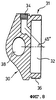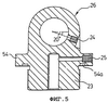 Сальниковый муфтовый подшипник 48 имеет резьбовую шейку 48а для сцепления с резьбовой частью, расположенной на внутренней стенке открытого конца наружной трубчатой ступени 12. Как показано на фиг.3 и 4, каждый промежуточный сальниковый муфтовый подшипник 50 имеет резьбовую шейку 52 для сцепления с резьбовыми частями, соответственно расположенными на внутренних стенках трубчатых ступеней 14, 16, 18 и 20, и содержит стопорную манжету 54, которая выступает в радиальном направлении за внутренний предел следующей более широкой трубчатой ступени, так что в собранном положении, показанном на фиг.1В, эта стопорная манжета 54 соприкасается с выдвигаемым концом следующей более широкой трубчатой ступени и, в частности, упирается в выдвигаемый конец сальникового муфтового подшипника 50 (или 48) следующей более широкой трубчатой ступени. Проушина 26 также содержит стопорную манжету 54, которая служит в качестве стопора для внутренней трубчатой ступени 22, упираясь в выдвигаемый конец сальникового муфтового подшипника 50, прикрепленного к самой узкой промежуточной трубчатой ступени 20.