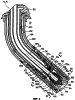 В этой своей концевой части топливная форсунка содержит кольцевой сопловой наконечник 152 с продольной осью 154, соответствующей центральной оси топливной форсунки. Кольцевой сопловой наконечник 152 установлен во внутренней проточке 156 цилиндрической насадки 158, которая укреплена пайкой на конце наружной стенки 160 топливной форсунки. Соединение пайкой этих двух деталей 158, 160 выполнено с использованием запасов металлического припоя, которые находятся в радиальных полостях 159а, 159b, проточенных радиально у верхнего конца насадки 158. В процессе нагрева металл поступает из радиальных полостей 159а, 159b капиллярным движением и обеспечивает жесткое соединение этих двух деталей. Насадка содержит кольцевую канавку 162, которая окружает внутреннюю проточку 156 и проходит по глубине дальше конца кольцевого соплового наконечника 152, от которой она отделена цилиндрической втулкой 164. Верхний конец цилиндрической втулки 164 также укреплен пайкой на центральной цилиндрической части 166а соединительной детали 166. В этой цилиндрической детали 166 выполнена глухая (несквозная) осевая проточка 168, проходящая от центральной части 166а в нижнюю часть 166b. У открытого конца проточки 168 к цилиндрической детали 166 прикреплена пайкой первая топливоподающая трубка 170. Трубка 170 предназначена для подачи первичного топлива от корпуса основной топливной форсунки 172, к которому она прикреплена своим верхним концом. Сам корпус укреплен на корпусе турбомашины известным образом, так что это крепление на чертеже не представлено.