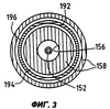 Верхний конец разделительного элемента 192 прикреплен пайкой к третьей трубке 200, которая расположена коаксиально первой и второй топливоподающим трубкам 170, 176, имеет несколько больший диаметр и также соединена с выходом корпуса топливной форсунки 172. Как и для описанных выше паяных соединений, соединение между деталями 192 и 200 может производиться с использованием запасов припоя, находящихся в полостях, проточенных радиально в нижнем конце разделительного элемента 192. Капиллярный выход припоя на этапе нагрева припоя обеспечивает жесткое соединение. В более простом варианте выполнения припой может быть распределен в зазоре 193 между этими деталями. Таким образом, топливоподающая трубка 200 образует первый кольцевой канал 202 вокруг второй топливоподающей трубки 176 для ввода охлаждающего агента и второй кольцевой канал 204 между этой трубкой 200 и наружной стенкой 160 топливной форсунки для возврата охлаждающего агента к источнику 10 после прохода в одну сторону и обратно по всей длине топливной форсунки по кольцевым каналам 194, 196. Такая конструкция, обеспечивающая проход охлаждающего агента в одну сторону и затем обратно по всей длине трубок подачи первичного и вторичного топлива, с полным окружением этих топливоподающих трубок каналом охлаждения, позволяет производить максимальный отвод тепла, в отличие от известных устройств, которые чаще всего содержат подводящий канал с одной стороны топливной форсунки и отводящий канал с другой стороны.