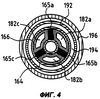 В соединительной детали 166, вблизи ее глухого конца 166b выполнены также сквозные поперечные отверстия 182а, 182b, 182с, предназначенные для сообщения ее центральной проточки 168 с внутренней проточкой 174 кольцевого соплового наконечника 152 (предпочтительно эти поперечные отверстия чередуются с радиальными полостями 165а, 165b, 165с, как показано на фиг.4). Кроме того, на свободном нижнем конце соединительной детали 166 проточены винтовые каналы 184 (образующие первичный завихритель 148), предназначенные для завихривания первичного топлива. Топливо выходит из первой топливоподающей трубки 170 и последовательно проходит через осевую проточку 168, внутреннюю проточку 174 и поперечные отверстия 182. Подобным же образом кольцевой сопловой наконечник 152 на своей наружной стенке, которая находится в контакте с внутренней проточкой 156 цилиндрической насадки 158, снабжен винтовыми канавками 186 (образующими вторичный завихритель 150). Винтовые канавки 186 предназначены для завихривания вторичного топлива, которое выходит из второй топливоподающей трубки 176 и последовательно проходит через кольцевую полость 178, продольные отверстия 180 и внутреннюю проточку 156. На своем свободном конце, который не связан с соединительной деталью 166, кольцевой сопловой наконечник 152 содержит первое сопловое отверстие 188, снабженное первичным выпускным конусом, для впрыска первичного топлива, выходящего из винтовых каналов 184. Для вторичного топлива, выходящего из винтовых канавок 186, предусмотрено, что внутренняя проточка 156 цилиндрической насадки 158, окружающая кольцевой сопловой наконечник 152, заканчивается вторым сопловым отверстием 190 с вторичным выпускным конусом, концентричным первому.