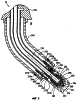 Известны различные типы конструкций топливных форсунок. Так, например, в международной заявке WO 94/08179 показана обычная двухблочная конструкция, пусковая топливная форсунка которой представлена на фиг.3, а основная топливная форсунка – на фиг.4. Эти две топливные форсунки по существу характеризуются своей концевой частью (распылителем), которая содержит большое число деталей и требует применения уплотнительных прокладок для обеспечения герметизации между первичной и вторичной системами подачи.