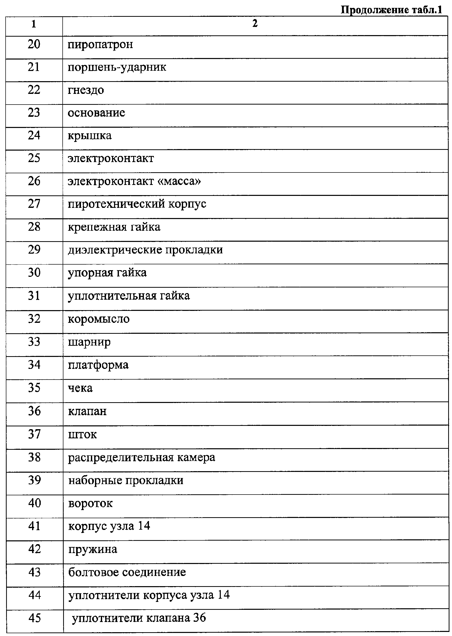 один из контактов является “массой”; пиропатрон размещен в пиротехническом корпусе; пиротехнический корпус установлен на основании; в пиротехническом корпусе между пиропатроном и коромыслом предохранительного узла установлен поршень-ударник; поршень-ударник зафиксирован ударной гайкой и “притерт” в пиротехническом корпусе уплотнительной гайкой;