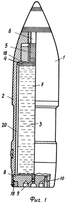 Боеприпас 1 может быть выполнен в виде снаряда (см. фиг.1) или в виде гранаты, или в виде мины, или подствольного выстрела или выстрела гранатомета, или реактивного снаряда и т.д. (не показано).