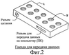 Фиг.3 представляет собой поперечное сечение в укрупненном масштабе, демонстрирующее устройство, показанное на Фиг.1, в собранном виде, причем устройство установлено внутри гнезда, показанного на Фиг.2, для передачи посредством новых радиочастотных путей выходных считанных и сохраненных данных устройства на считывающее устройство компьютера;