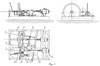 Изобретение поясняется графически: на фиг.1 схематически изображен общий вид стенда, вид сбоку и вид сверху; на фиг.2 – модель гребня колеса, размещенная эксцентрично на поворотной оси; на фиг.3 – кинематическая схема стенда.