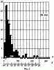 В Медицинском радиологическом научном центре РАМН было проведено обследование больных с различной патологией у онкологических больных с использованием хемилюминесцентных методов исследования. На основе полученных данных и приведенных в описании изобретения соотношений (формул) были определены численные значения ФА ПМЛ, СРП ПМЛ и АОАинтегр для каждого пациента. Множество таких наблюдений позволило получить их статистические характеристики, т.е. плотности распределения по каждому показателю (см. фиг.2 и фиг.3). Полученные распределения являются существенно асимметричным и для работы с ними использованы подходы, изложенные в книге Браунли К.А. Статистическая теория и методология в науке и технике. – М.: Наука-ФМЛ, 1977, – с.114-125. Анализ таких кривых и реальные клинические наблюдения позволили нам выделить зоны адаптации и декомпенсации. При этом были установлены максимальные (предельные) значения для ФА ПМЛ=230,0 (клеток/мл) (для гарантии принято 250,0 клеток/мл), АОАинтегр=6,3 мл-1 (для гарантии принято 7,0 мл-1), СРП ПМЛ=1,00. Отсюда отношение текущего значения показателя к его предельной величине характеризует “относительную единицу”, принятую в заявленном изобретении.
