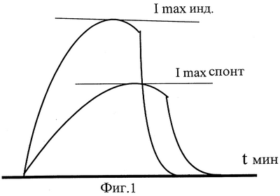 Интенсивность хемилюминесценции измеряют в относительных единицах. Спонтанная хемилюминесценция характеризует степень активации ПМЛ крови (см. фиг.1). Этот показатель отражает функционирование наиболее реактивной популяции клеток крови, стратегия которых нацелена на защиту внутренней среды организма от эндогенных и экзогенных влияний, нарушающих гомеостаз. ПМЛ крови являются мощным эффектором гомеостаза. Они генерируют свободные радикалы в процессе респираторного взрыва в состоянии активации и высвобождают литические ферменты в процессе фагоцитоза. В этой ситуации ПМЛ крови являются индикатором многочисленных нарушений гомеостаза, а также активными участниками его регуляции. Высокая скорость обмена ПМЛ, время жизни которых в русле крови не превышает 5-6 часов, позволяет наблюдать за динамикой патологического процесса и эффективности лечения.