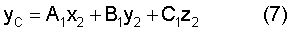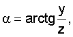 От системы координат тира XYZ перейдем к связанной с координатами точки пролета через световой экран фотолинеек системе координат XCYCZC путем поворота на угол относительно оси X, где y, z – координаты точки пролета в системе XYZ, начало которой выбрано в точке центрального проектирования объектива камеры фотолинейки (фиг.6). Тогда в системе координат XCYCZC имеем