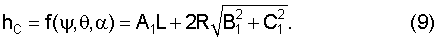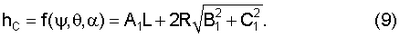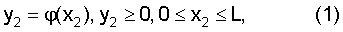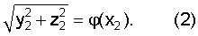 и найдем экстремальные точки (границы тени) в плоскости XCYC, образуемые поверхностью вращения (2) в диапазоне х2 согласно (1). Если задано аналитическое выражение функции (x2), то можно получить аналитическое выражение границ yC1, yC2. Если аналитическое выражение не задано, то границы можно определить экспериментально по тени метательного элемента, наклоненного на углы , в потоке плоскопараллельных лучей света под углом .
