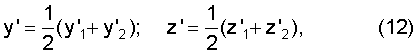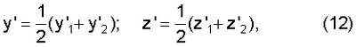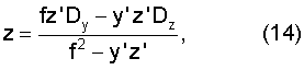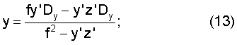 где Dy, Dz – расстояния от начала координат мишени до центров проектирования камер с фотолинейками согласно фиг.7.