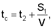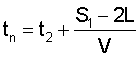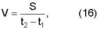 Скорость полета метательного элемента раньше определялась по времени пролета фиксированной базы. Для повышения точности измеряются моменты времени входа метательного элемента tвх1, tвх2 в параллельные световые экраны 41, 42 и моменты времени выхода tвых1, tвых2 из них. После этого вычисляются моменты времени t1, t2 пересечения световых экранов серединой метательного элемента