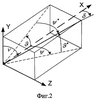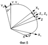 С огневой трассой (тира или полигона) связана прямоугольная система координат XYZ, ось Х которой горизонтальна и направлена по направлению стрельбы, ось Y вертикальна, а ось Z образует с ними правую тройку. Угловое положение метательного элемента (система координат X2Y2Z2) характеризуется углами , * или *, , показанными на фиг.2, 5. Для перехода от системы координат тира XYZ к системе координат метательного элемента X2Y2Z2 нужно сделать поворот на угол относительно оси Y (получается система X1Y1Z1), а затем – на угол * относительно оси Z1 (получается система X2Y2Z2). В случае определения координат поверхности вращения в системе XYZ сделаем поворот в обратном направлении, т.е. сначала на угол – *, а затем на угол – около соответствующих осей. В результате получим