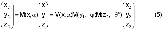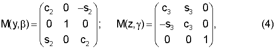 где М – матрицы вращения вокруг соответствующей оси, причем