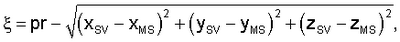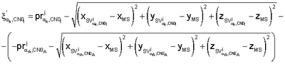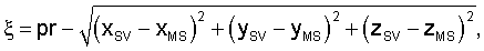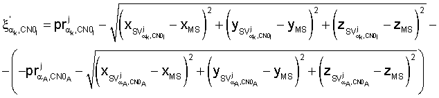 – ошибку оценки измерений псевдорасстояния определяют с точностью до временного рассогласования часов мобильной станции, как разность между оцененным псевдорасстоянием и расстоянием от спутника до истинного положения мобильной станции,