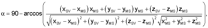 Блок формирования решения о наличии измерений спутников из опорных диапазонов 2 предназначен для анализа поступающих на вход отношений сигнал – шум и координат спутников. Для каждого спутника вычисляется угол возвышения спутника следующим образом: