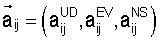 fji – мгновенная амплитуда волнового шумового сейсмического поля при использовании однокомпонентных приемников или составляющая мгновенной амплитуды волнового шумового сейсмического поля с выбранным направлением поляризации на i – канале в j – момент времени при использовании трехкомпонентных приемников, где проекции на соответствующие направления определяются как где – проекции мгновенной амплитуды волнового шумового сейсмического поля на радиальное, поперечное вертикальное и поперечное горизонтальное направление соответственно; – регистрируемые мгновенные амплитуды волнового шумового сейсмического поля на трехкомпонентных сейсмографах: UD -вертикальная компонента, EW и NS – горизонтальные компоненты с направлением восток-запад и север-юг соответственно;