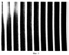 Измерения показали, что при выбранных условиях за N=50 импульсов лазерного излучения поверхность стекла (в центральной части зоны облучения) остается гладкой (подтверждено профилометрией, см Фиг.2), а в приповерхностной области образуется решетка диэлектрической проницаемости, обнаруживаемая с использованием дифракции зондирующего излучения, направляемого в центральную часть зоны облучения. Это подтверждалось и профилометрией поверхности центральной зоны облучения. Микрофотография решетки диэлектрической проницаемости в центральной части зоны облучения, полученная с использованием оптического микроскопа на просвет, приведена на Фиг.3. Измерения показали, что в выбранных условиях эксперимента наблюдается сложная динамика поведения решетки структур (рельефа и диэлектрической проницаемости), см. Фиг.1. Сначала быстро нарастает до максимальной амплитуды решетка рельефа, которая экспоненциально затухает с дальнейшим ростом числа импульсов и одновременно образуется и нарастает (с тем же периодом) решетка диэлектрической проницаемости, период которой слабо уменьшается с ростом числа импульсов N.
