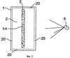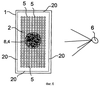 На фиг.2 изображено устройство (фиг.1), показанное в направлении, противоположном направлению транспортирующего потока 2 (направление потока в сторону наблюдателя изображения). На фиг.2 показана более ясно, чем на фиг.1, основная идея изобретения, то есть даже при наличии некоторой турбулентности на границах 20 раздела между транспортирующим потоком 2 и его окружением, при этом турбулентность не приводит к эффекту возмущения в ламинарном потоке во внутренней и/или центральной частях транспортирующего потока 2, где подаваемые центры 4 рассеяния таким образом образуют устойчивый проекционный экран 3.