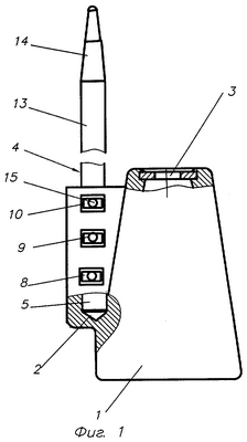 На фиг.1 и 2 изображены соответственно общий вид и вид сбоку устройства с выступом по форме в виде конуса;