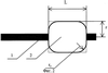 Сущность предлагаемого изобретения пояснена на Фиг.1 и Фиг.2, где схематически изображена лампа и укрупненно изображен электрод, состоящий из тугоплавкого металла (1), на который надета цилиндрическая спеченная масса (2) (изображение горелки вследствие ее распространенной формы не приводится). Для увеличения теплоотвода из области катодного пятна разряда при его локализации на ребре спеченной массы и снижения испарения эмиссионного вещества с этого участка ее поверхности на ребрах выполнены скругления с радиусом rc.