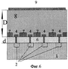 В пластине кремния р-типа КДБ 20 были сформированы в прямоугольнике 2×0,5 мм 40 сильнолегированных областей 2 (n+) с концентрацией примеси фосфора 1020 см-3 в виде полосок шириной порядка 2 мкм и длиной 0,5 мм, расположенных друг от друга на расстоянии 50 мкм, полоски были снабжены общим омическим контактом 4, выполненным в виде гребенки из алюминия. На поверхности кремния был выращен изолятор – термический окисел 6 толщиной 0,1 мкм. На поверхности изолятора в виде гребенки был сформирован из алюминия проводящий слой 7. После чего наружная поверхность покрывалась изолирующим слоем двуокиси кремния 8 толщиной 1 мкм. На поверхности изолирующего слоя был сформирован проводящий алюминиевый участок 9.