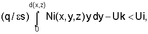 где Ui – напряжение пробоя полупроводникового слоя 1; у – координата, отсчитываемая от металлургической границы р-n перехода или барьера Шоттки в направлении вдоль толщины слоя 1; q – элементарный заряд; Ni(x,y,z) – профиль распределения примеси в слое 1, d(x,z) – толщина слоя 1; z, х – координаты на поверхности слоя 1; s – диэлектрическая проницаемость слоя 1; Uk – встроенный потенциал. При изменении величины управляющего напряжения, поданного на омические контакты к р-n переходу (барьеру Шоттки), можно регулировать величину емкости конденсатора, образованного между омическим контактом к полупроводниковому слою и проводящим участком, выполненным на изолирующем слое.