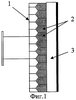 Наиболее близким техническим решением к предлагаемому является антенна с уменьшенной поверхностью обратного рассеивания 1 (фиг.1) /2/, содержащая минимум один излучатель 2, работающий в заданной полосе рабочих частот, размещенные перед излучателем в одной плоскости устройства частотной селекции 3 с полосовыми характеристиками, позволяющими пропускать электромагнитное излучение в полосе рабочих частот, а за пределами этой полосы отражать излучение. Очевидно, что основным недостатком такой антенны является ее “заметность” в полосе рабочих частот, когда антенна переотражает в обратном направлении часть энергии, приходящей от внешнего источника излучений.