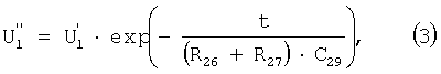 где (R26+R27)·C29 – постоянная времени ( С2), которой соответствует формируемый участок Б кривой изменения напряжения Uэ (между точками 1-2, фиг.6).