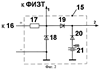 Автономный источник постоянного напряжения 15 (фиг.2) содержит резистор 17, входной вывод которого подключен к плюсовой шине дополнительного выпрямителя 16, а выходной вывод – к первому входу ФИЗТ 14, к катоду стабилитрона 18, анод которого подключен к минусовой шине выпрямителя 16 и через диод 19 – ко второму входу первого компаратора 10. К катоду диода 19 подключена цепочка, состоящая из последовательно соединенных развязывающего диода 20 и плюсовой шины опорного напряжения гальванического элемента 21.