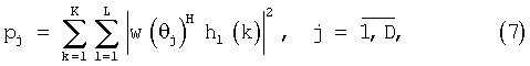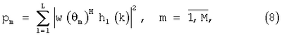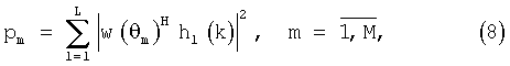 Определяют М доминантных направлений, например, как значения k, соответствующие М локальным максимумам функции. Возможны и другие способы определения М доминантных направлений. Например, сначала определяют доминантное направление, которому соответствует максимум функции Р( k). Затем модифицируют функцию Р( k), исключая из нее найденный максимум и значения в некоторой окрестности найденного максимума. Ширина исключаемой области определяется угловой разрешающей способностью антенной решетки. Затем определяют максимум модифицированной функции и соответствующее ему направление распространения берут в качестве второго доминантного направления. Описанную процедуру повторяют до тех пор, пока не будут определены все М доминантных направлений.