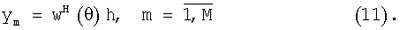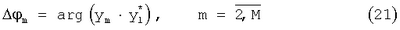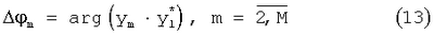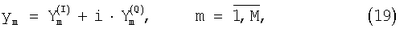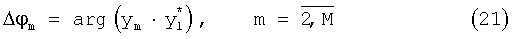 Рассчитывают комплексные амплитуды сигналов уm, , соответствующие М доминантным направлениям распространения сигнала, например, следующим образом: