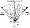 При реализации второго варианта оценки доминантных направлений базовая станция передает К пилот-сигналов, формируя для каждого из них диаграмму направленности с максимумом в соответствующем направлении и соответствующей угловой ширины, таким образом, чтобы “покрыть” всю область углового рабочего сектора базовой станции (см. Фиг.7).