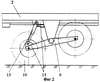 После установки агрегата на место погрузки золотник гидрораспределителя 17 переводят из положение «нейтральное» в положение «плавающее». При таком положении разбрасыватель опирается на все колеса 10 балансирной подвески 9 и воспринимает нагрузку от массы удобрений на все колеса балансирной подвески.