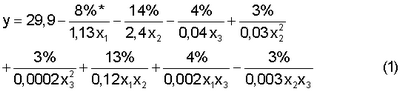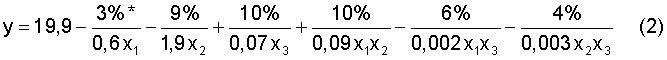 * – В уравнениях над чертой указаны доли влияния факторов
